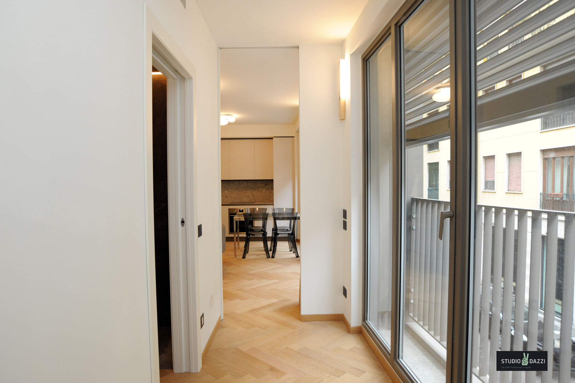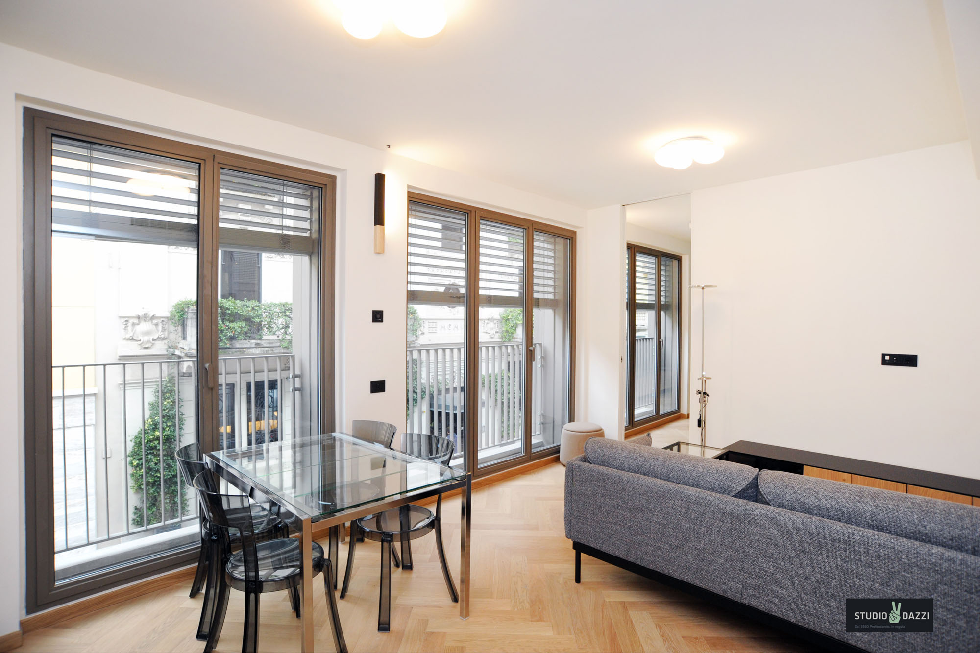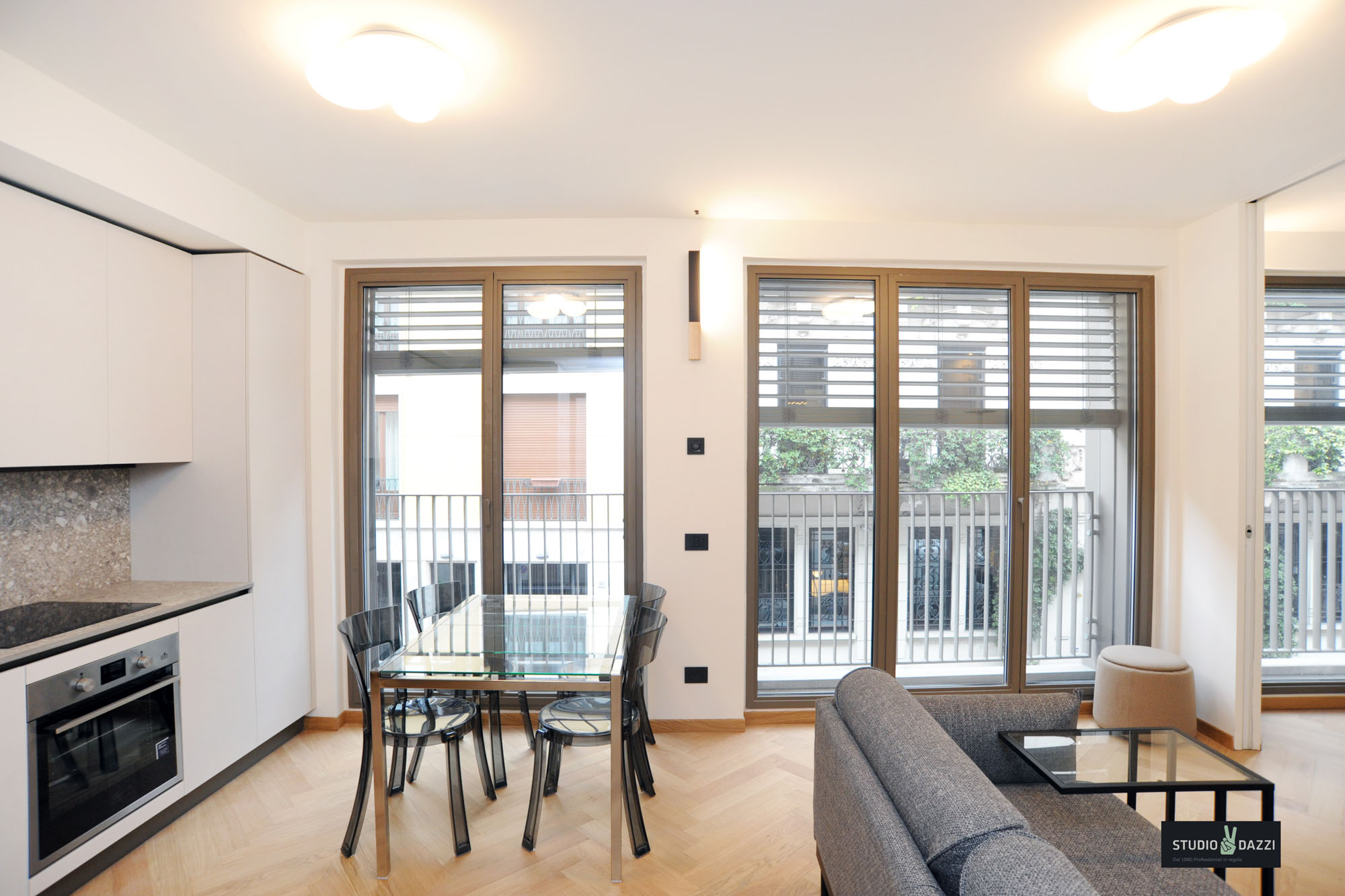 In elegante complesso di nuova costruzione in via Varese 10, Studio Dazzi propone in esclusiva un bilocale finemente arredato, situato al primo piano.