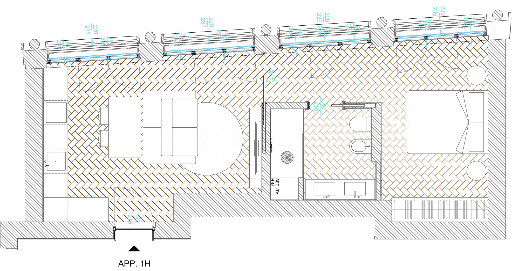 L’appartamento, curato in ogni dettaglio, è composto da soggiorno con cucina a vista, camera da letto matrimoniale e bagno moderno. Gli arredi di design e le finiture di pregio rendono gli ambienti eleganti, accoglienti e funzionali.
